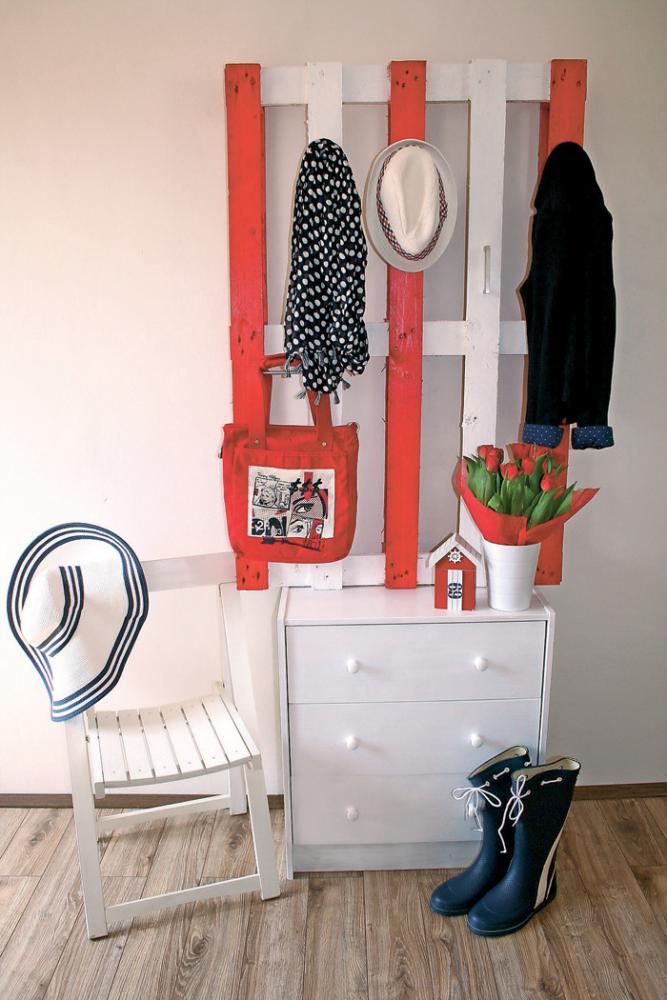 Stará paleta nepatří na skládku, ale do předsíně. Nevěříte? Tak to zkuste! Stačí ji důkladně očistit a natřít, a máte moderní doplněk do předsíně. Zkuste to třeba v námořnickém stylu.