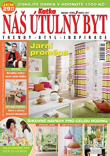Poradna je tentokrát zaměřena na praktické informace, které se budou hodit, pokud se právě chystáte vytvořit obytné podkroví. Ukážeme vám pěkné doplňky v zářivě oranžové barvě a sami si můžete vyzkoušet nápadité aranžmá z čerstvých jarních květů. Milovníky světové architektury jistě zaujme rubrika věnovaná zakladateli funkcionalismu Le Corbusierovi. Pozveme vás také na návštěvu k sympatickému herci Lukáši Hejlíkovi. Lukáš vyznává styl života blízký přírodě, a pokud mu to pracovní povinnosti dovolí, rád tráví volno na své venkovské chalupě. Možná vás bude inspirovat moderní garsonka s krbem laděná do střízlivých šedých tónů. Designérka Iva tentokrát navrhla obývací pokoj kombinující výrazné barvy čalounění s přírodní dýhou a pro čtenářku paní Vančurovou vytvořila vizualizaci welness prostoru, který vznikl z dříve nepoužívané místnosti. Magazín vás seznámí s tipy týkajícími se balkonu a terasy, představí novinky na poli LED svítidel a poradí, jak zatočit s jarním úklidem. Dozvíte se také, jaké triky používají ve své práci interiéroví designéři. A jestliže vám chybí něco hezkého do bytu, určitě si vyberete z řady pěkných dřevěných doplňků. Prostřednictvím naší stálé cestovatelské rubriky můžete objevovat krásy věčně zeleného Skotska.