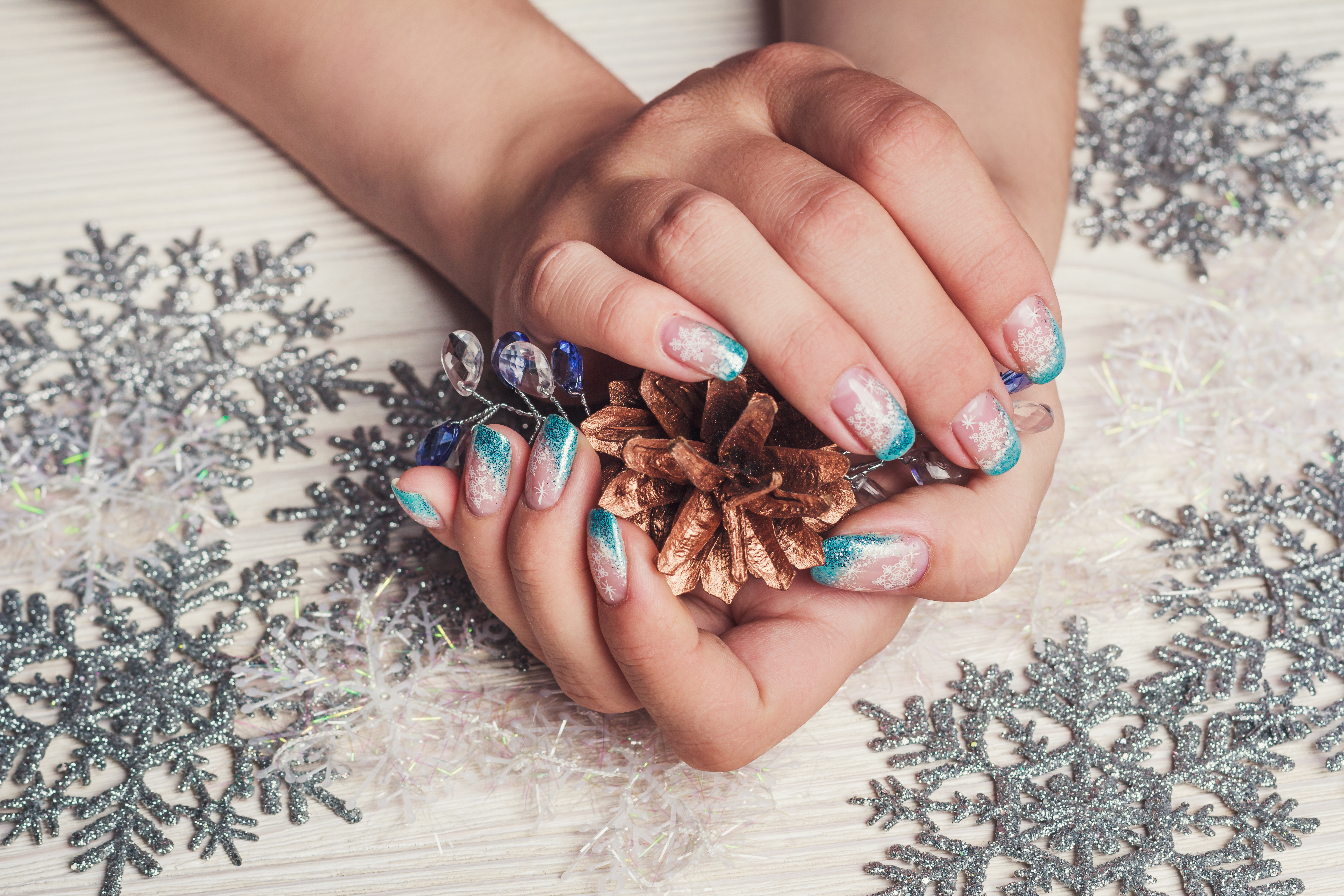 Chcete-li něco opravdu unikátního, inspirujte se přírodou. Na nehty si nechte namalovat sněhové vločky, visící rampouchy nebo ledové květy, které zdobí zamrzlá okna. Tyto ručně malované detaily vyžadují zručnou manikérku a čas, ale výsledek stojí za to.