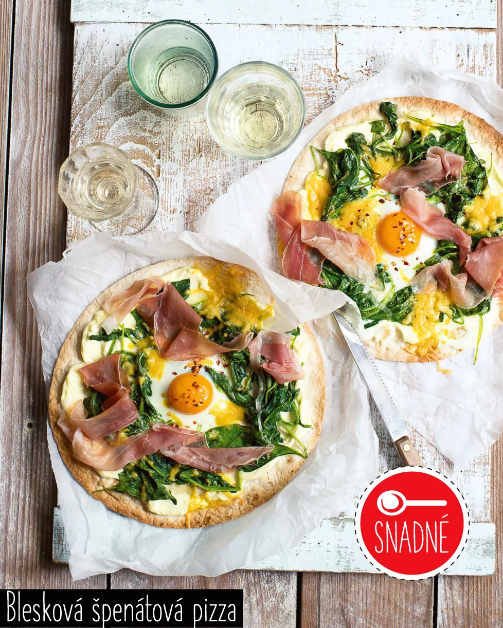BLESKOVÁ ŠPNÁTOVÁ PIZZA S VAJÍČKEM A PROSCIUTTEM