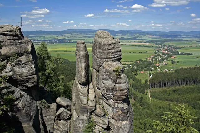 Nemusíte být hned zdatní horolezci, abyste si vychutnali úchvatný výhled shora na Český ráj. Přímo pohlednicový obrázek se vám odkryje třeba na Mariánské vyhlídce, kterou najdete v Hruboskalském skalním městě poblíž lázní Sedmihorky. Pěkně pohromadě tu spatříte hrad Trosky, vrch Kozákov i zámek Hrubá Skála. Malou ochutnávku můžete absolvovat při virtuální prohlídce na webu skalni-mesta.cz. Ale naživo je to stejně nejhezčí...